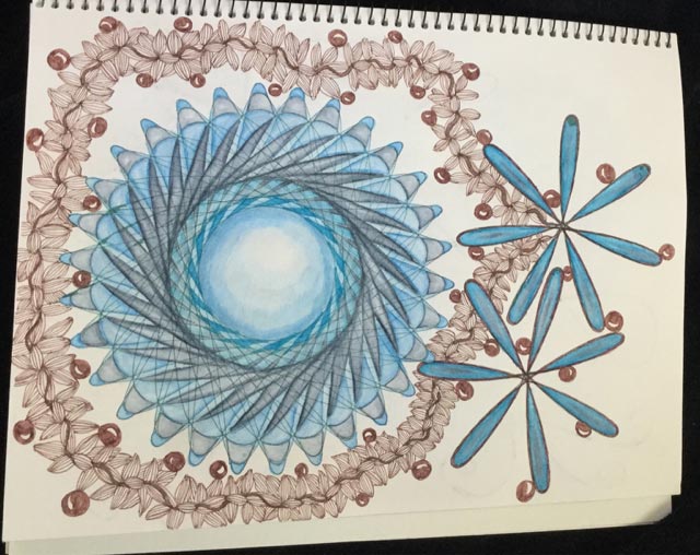 She created a thread on a forum dedicated to fountain pens, showing some of the art she has produced using fountain pens and mixing zentangle components with Wild Gears patterns. She also shows photos showing how her Wild Gears have totally invaded her living space.