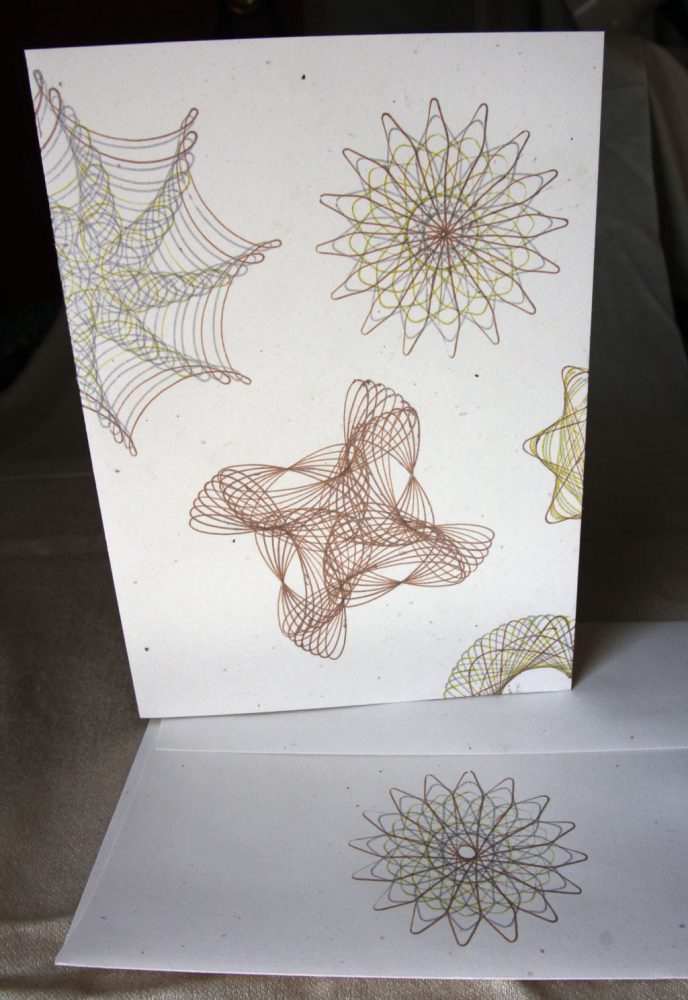 I’ve been pleased to use my cards for birthdays and thank-you’s, and they would also be suitable for sympathy cards. Even for Christmas, especially using stars. Here is an old video of mine on how to make a 5-pointed star with Spirograph. (That video now has 108,000 views and 525 likes. Wow, just wow.)