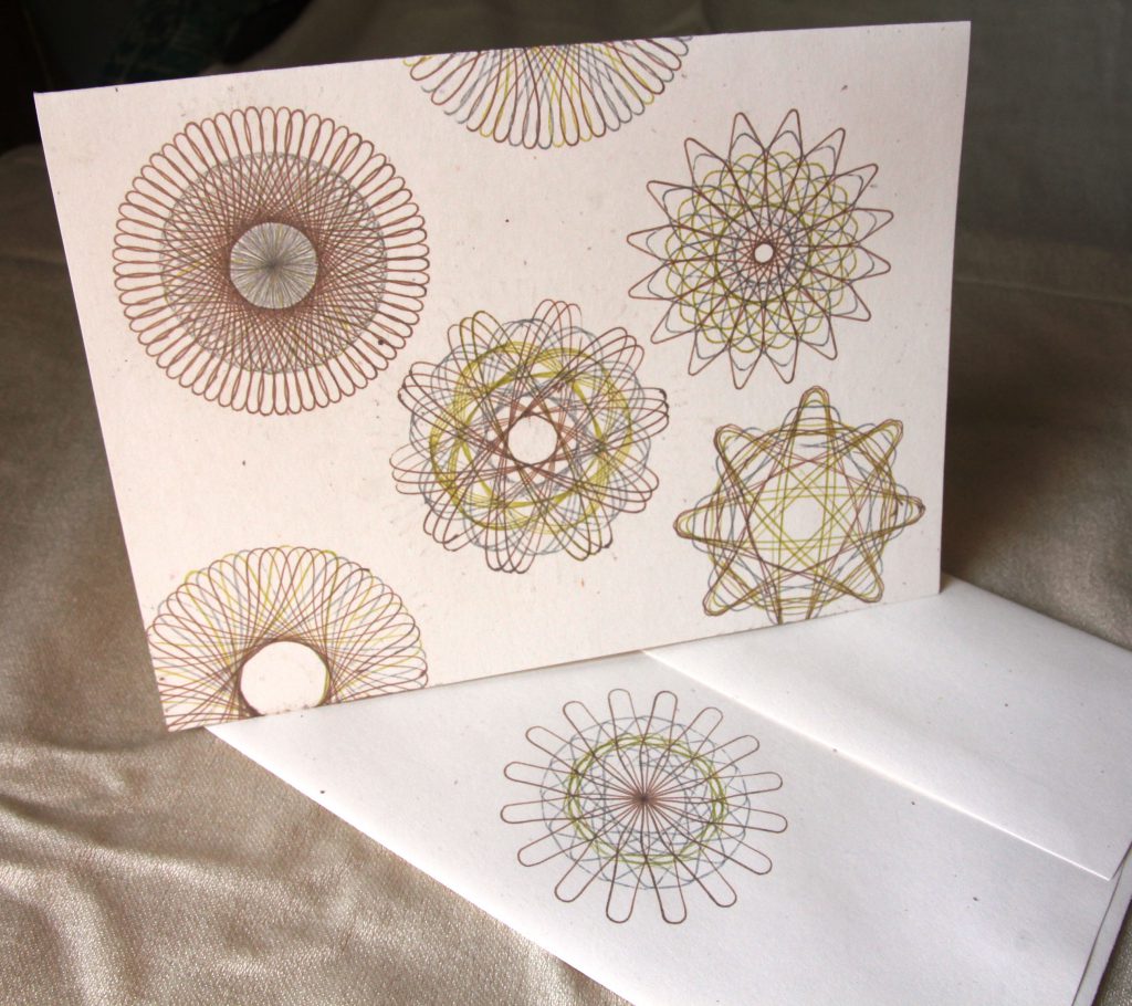 Got spiro-skills? Use them to make unique, hand-drawn greeting cards with your Spirograph or Wild Gears. These are all made with Wild Gears: