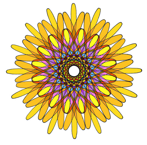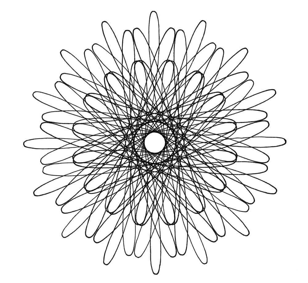 The artwork is original and was hand drawn by me in black ink using a precision spirograph-like gear set called Wild Gears. The video shows how I’m using a wheel-within-a-wheel technique to draw it. I then scanned the drawing at very high resolution, and cleaned it up in Photoshop to make a clean, sharp coloring page, and saved it as a high-resolution PDF file.